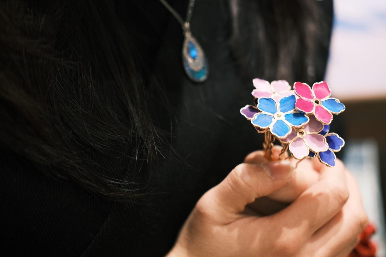 “嚓嚓嚓、嚓嚓嚓……”在凯发k8官网鼓楼校区南园的南青格庐活动室里,同学们凝神静气、屏息专注,手上的剪刀和小镊子却从未停歇。勾条、打尖、传花,几个步骤下来,一朵朵精巧的绒花就跃然“指”上。凯发k8官网绒花非遗制作体验活动作为“文化共融月”的首发活动,一经推出便广受欢迎,短短一小时内体验名额就被“一抢而空”,应同学们热烈要求又再度“返场”。