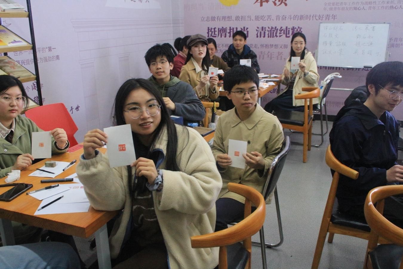 游园会之外,像这样精致有趣、校园内的“沉浸式”非遗体验活动,“文化共融月”里还有很多,以优质的传统文化学习体验点缀同学们的课余生活,让每一次活动报名发布都成为同学们最期待的“校园新鲜事”。同学们在印章篆刻体验中,静心专注于方寸之间,刻划一枚独一无二的专属印章;在戏曲文化体验中,共赏悠扬曲声中的抑扬顿挫、诗情画意;方圆绮错,妙手生花,在扎染蓝染艺术体验里,感受绞扎浸染带来的偶得之美;巧剪妙贴,嵌羽挂翠,用一抹清丽的青绿点缀心情。