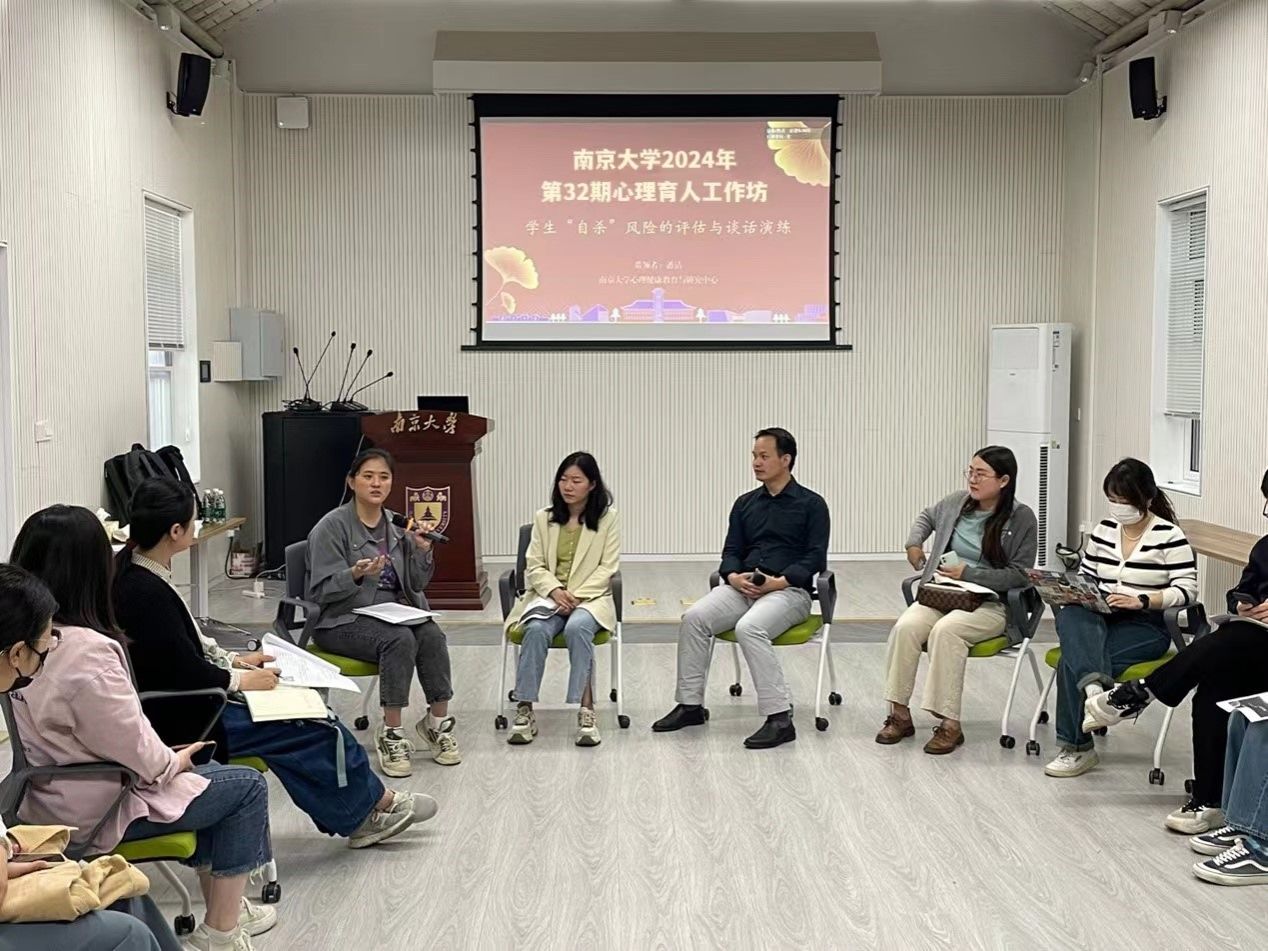 为落实《凯发k8官网“奋进行动”实施方案》,推动“三室一厅”专项工作,五育并举加强协同育人,增强辅导员心理育人能力,构筑人才成长新生态,5月15日,心理中心在鼓楼校区举办了第32期凯发k8官网心理育人工作坊。本期活动的主题是“学生‘自杀’风险的评估与谈话演练”,由心理中心专职教师潘洁带领。化学与化工学院专职辅导员朱青作为特邀嘉宾分享危机干预的经验和体会,20余名辅导员现场参加,共同探讨和交流学生危机干预工作的经验与思考。