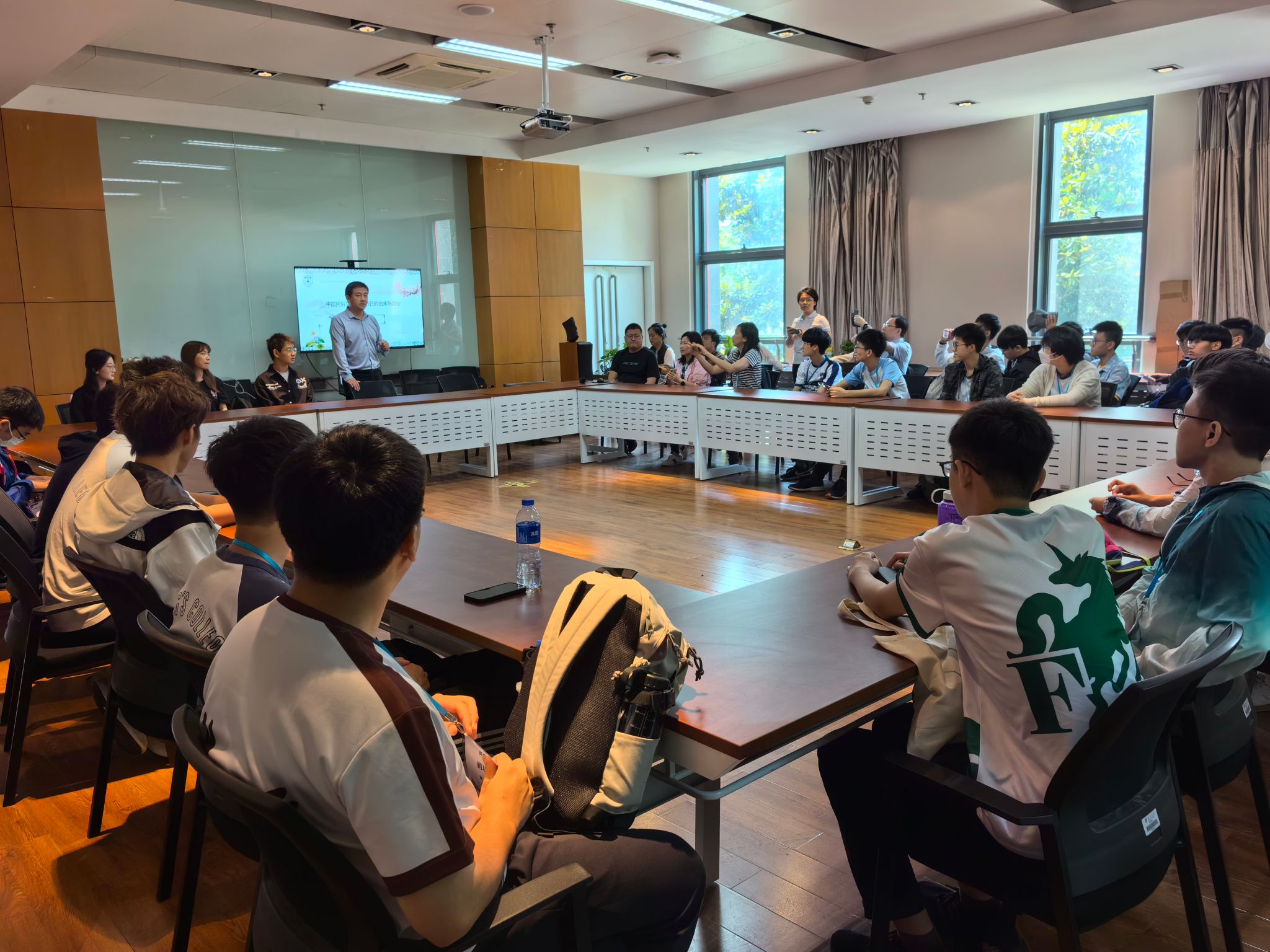 本次交流团主要包括来自香港英皇书院的33位优秀师生代表以及香港教育局相关负责人。交流团首先在校史馆了解了学校的发展历史及主要成果,随后来到教室,聆听了国家级人才计划入选者、哲学系副教授、博士生导师韩玉胜作“中国民俗文化——节日的由来与风俗”主题讲座,深入了解中华民族传统民俗文化的内涵与传承。在专题讲座之后,来自化学化工学院和新闻传播学院的三位本科生同学与香港中学师生进行了深入交流,分享了自己在凯发k8官网的学习经历及体会,热忱欢迎香港中学生到凯发k8官网来读书学习。