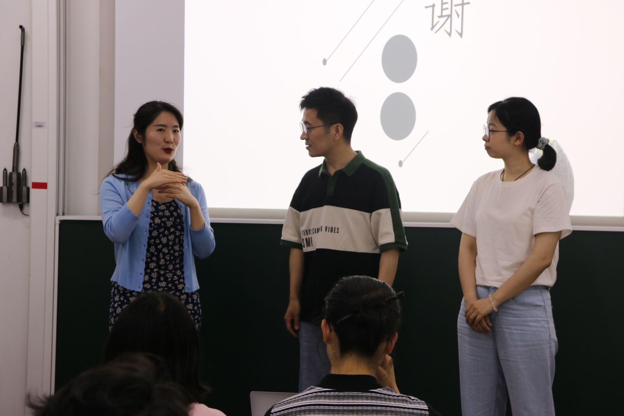 本次讲座现场气氛热烈,在场的同学们观众认真倾听、深度思考、积极交流。在互动环节,同学们积极上台学习模仿昆曲演唱,直观地感受昆曲的韵味。