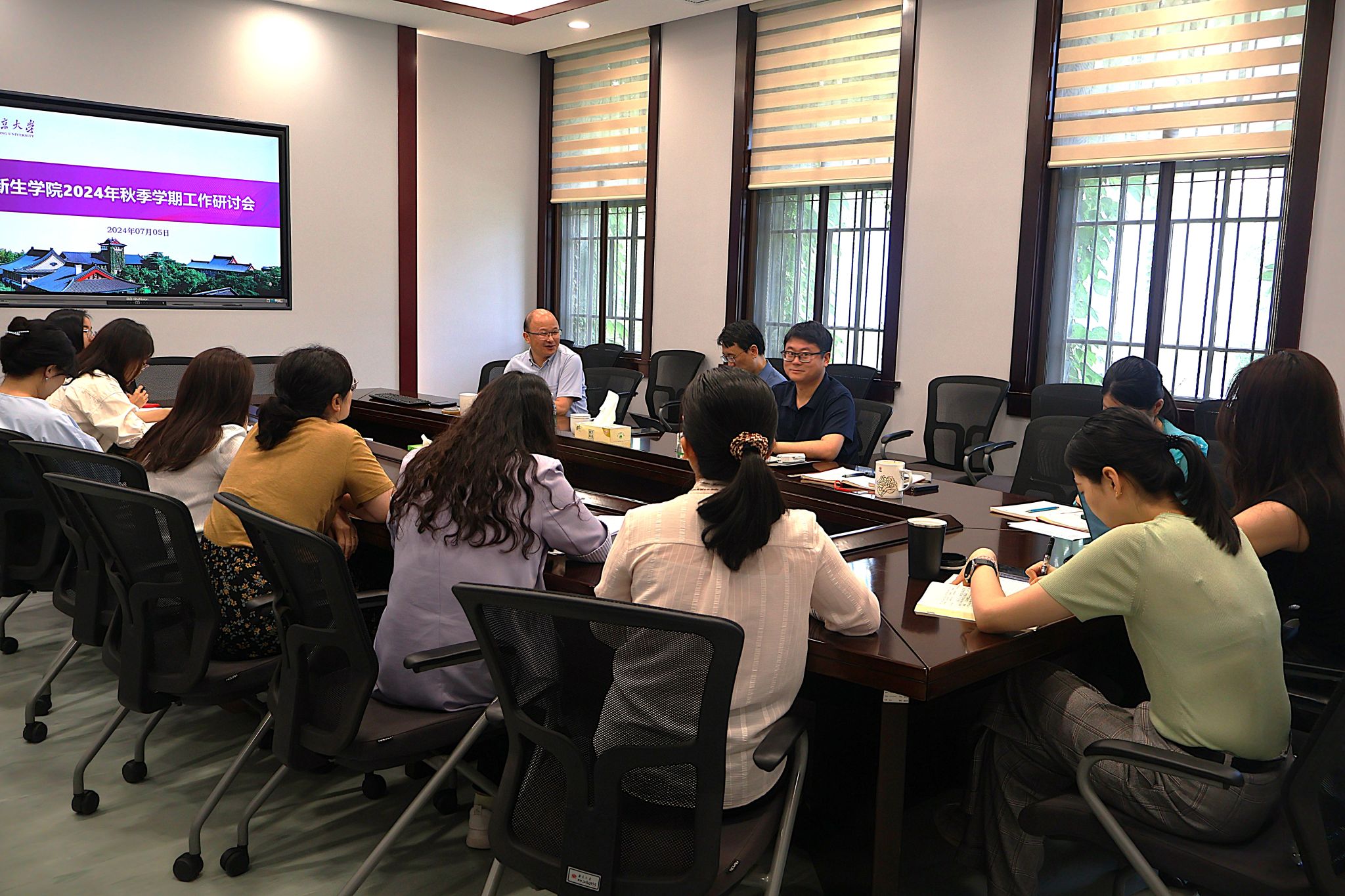 凯发k8官网新生学院2024年秋季学期工作研讨会于7月5日在北大楼召开,本科生院常务副院长、新生学院执行院长王骏出席会议并讲话。新生学院各书院主任及育教中心成员参加会议。会议由学院党委书记、常务副院长蒋恩铭主持。