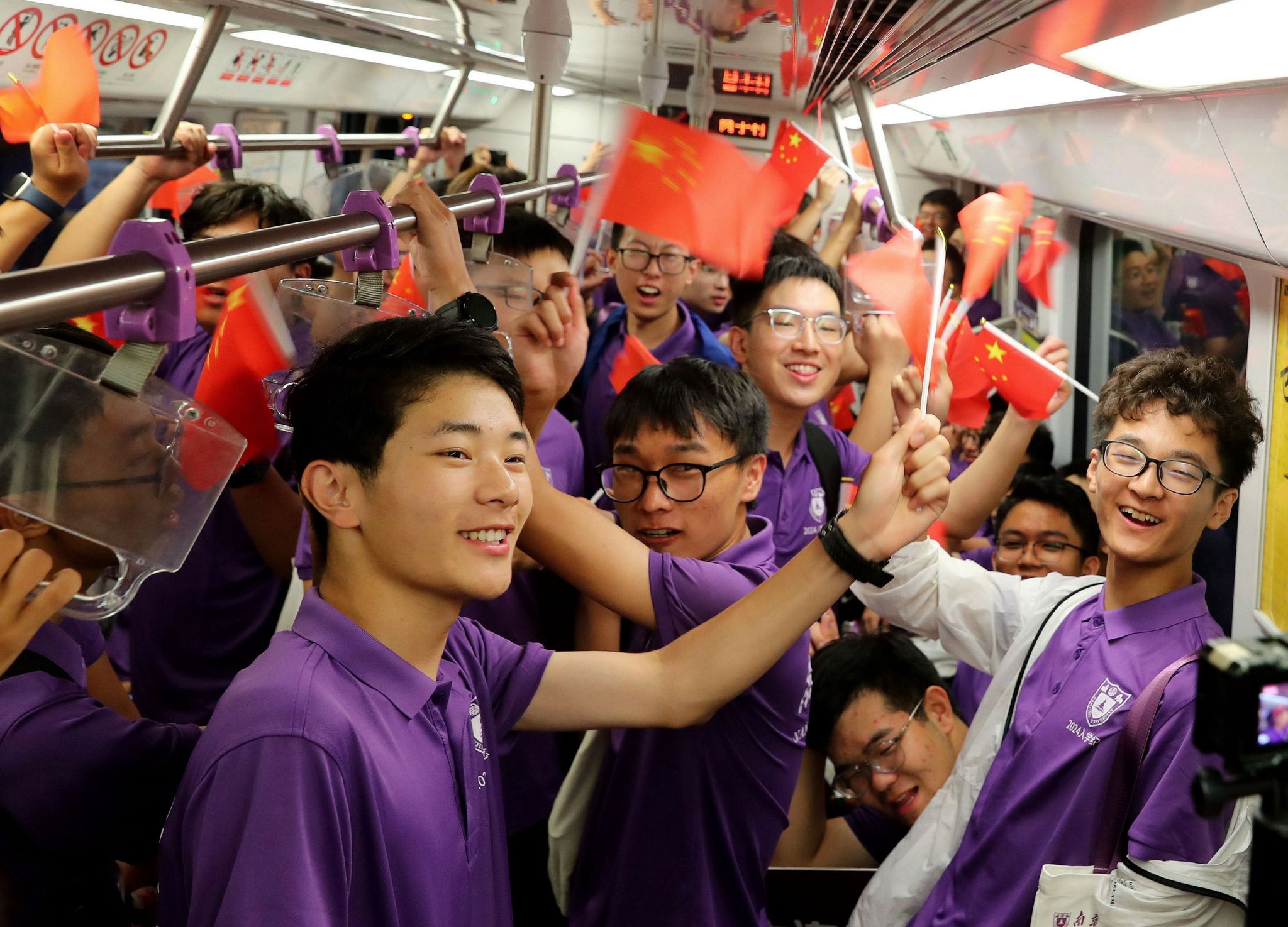 随着专列缓缓起步,新生们兴致高昂,满怀期待。不一会儿,从车厢里传来了嘹亮的歌声:“五星红旗迎风飘扬,胜利的歌声多么响亮!”大家纷纷挥舞手里的国旗,在《歌唱祖国》激越嘹亮的旋律中,祝福亲爱的祖国不断走向繁荣富强。同学们展现的青春风貌,恰如那初升的太阳,如此朝气蓬勃、风华正茂。