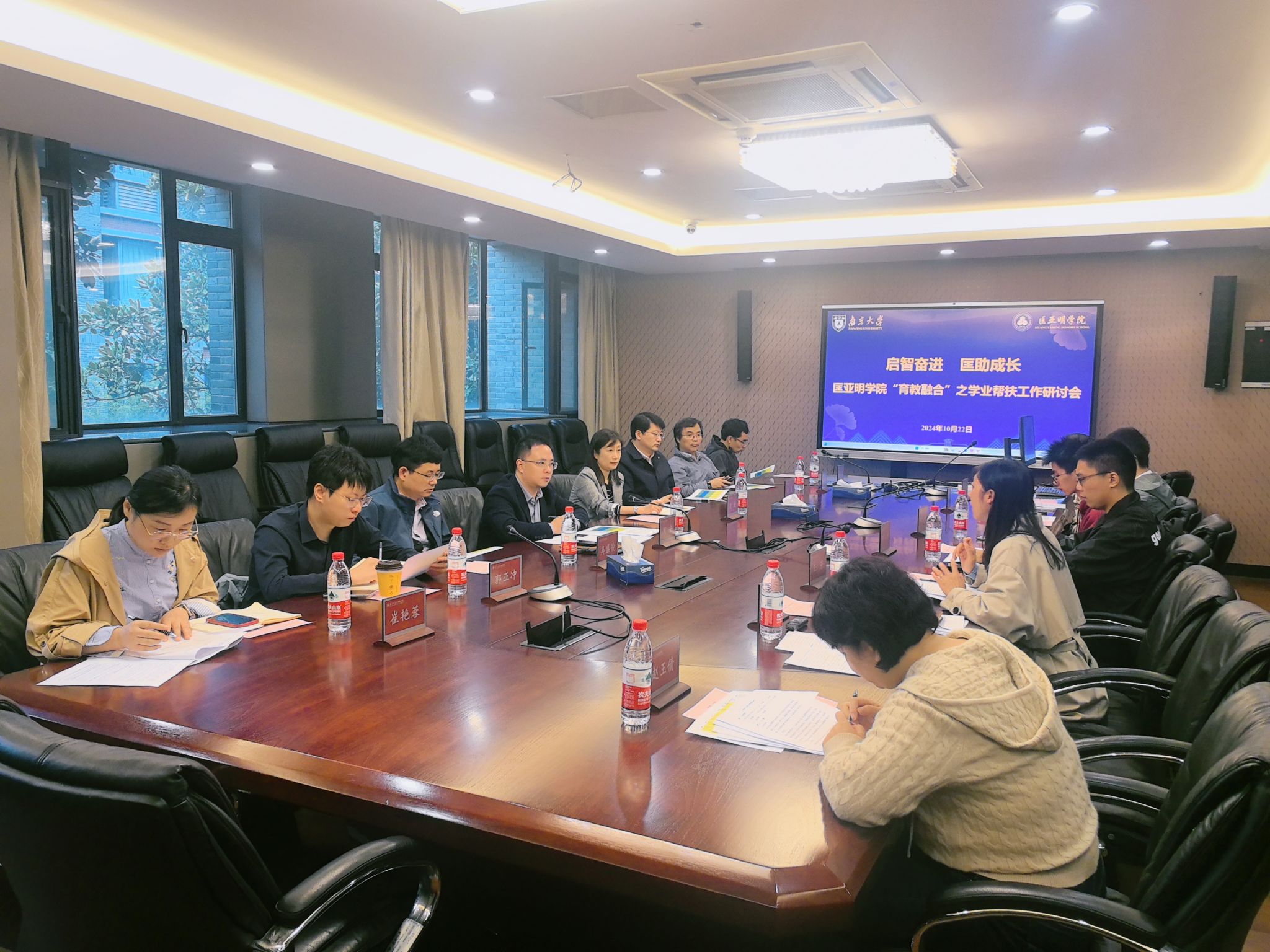 为进一步发挥全员育人力量,助力学生更好地实现学业进步与个人成长,近日,“启智奋进 匡助成长”匡亚明学院育教融合学业指导工作研讨会在仙林校区顺利举行。匡亚明学院党委书记周媛,副院长董昊,教务员崔艳蓉、王芳,辅导员赵玉倩、陈丹,学业导师、班主任及朋辈导师代表共15人参加研讨。活动由匡亚明学院党委副书记周安主持。