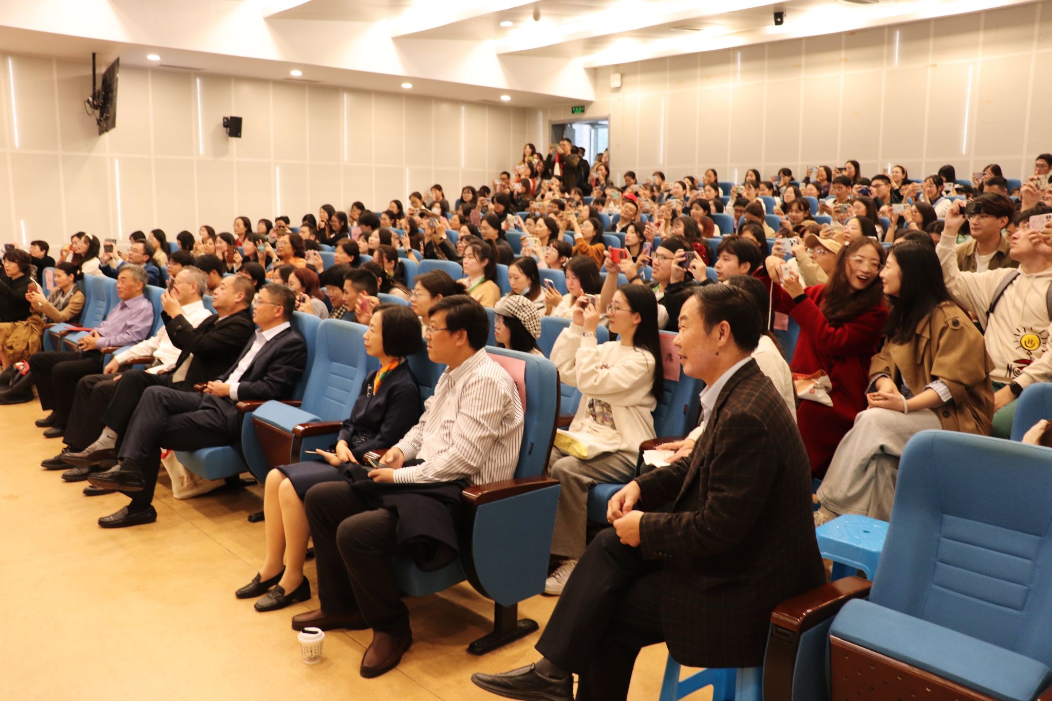 回顾往昔,苏童认为米兰·昆德拉的那句自述:“作品是在抒情的废墟上建立起来的”,很符合自己的创作经历。当谈到自己阅读福克纳《献给爱米丽的一朵玫瑰花》的体会时,苏童指出,“一朵玫瑰很重要”的真正意涵在于,爱情、友谊与竞争都配享玫瑰,每个人都应得一朵玫瑰,每个人活出真正的自我最重要。当叶子老师提到苏童作品里的地方经验以及香椿树街这一想象空间的塑造时,苏童不无幽默地说香椿树街是其天才般的发明创造,只因他在创造香椿树街这个象征着丑陋、卑琐的意象时,并未真正见识过香椿树的样貌。但对于方言写作,苏童认为,作为一位幅员辽阔国度中的作家,其文学作品应当在追求文学性、思想性之时,坚持使用统一的语言,它的价值绝不取决于方言写作。活动现场气氛热烈,参加此次活动的师生朋友无不沉浸在苏童与叶子绘声绘色、妙趣横生的文学对话中。