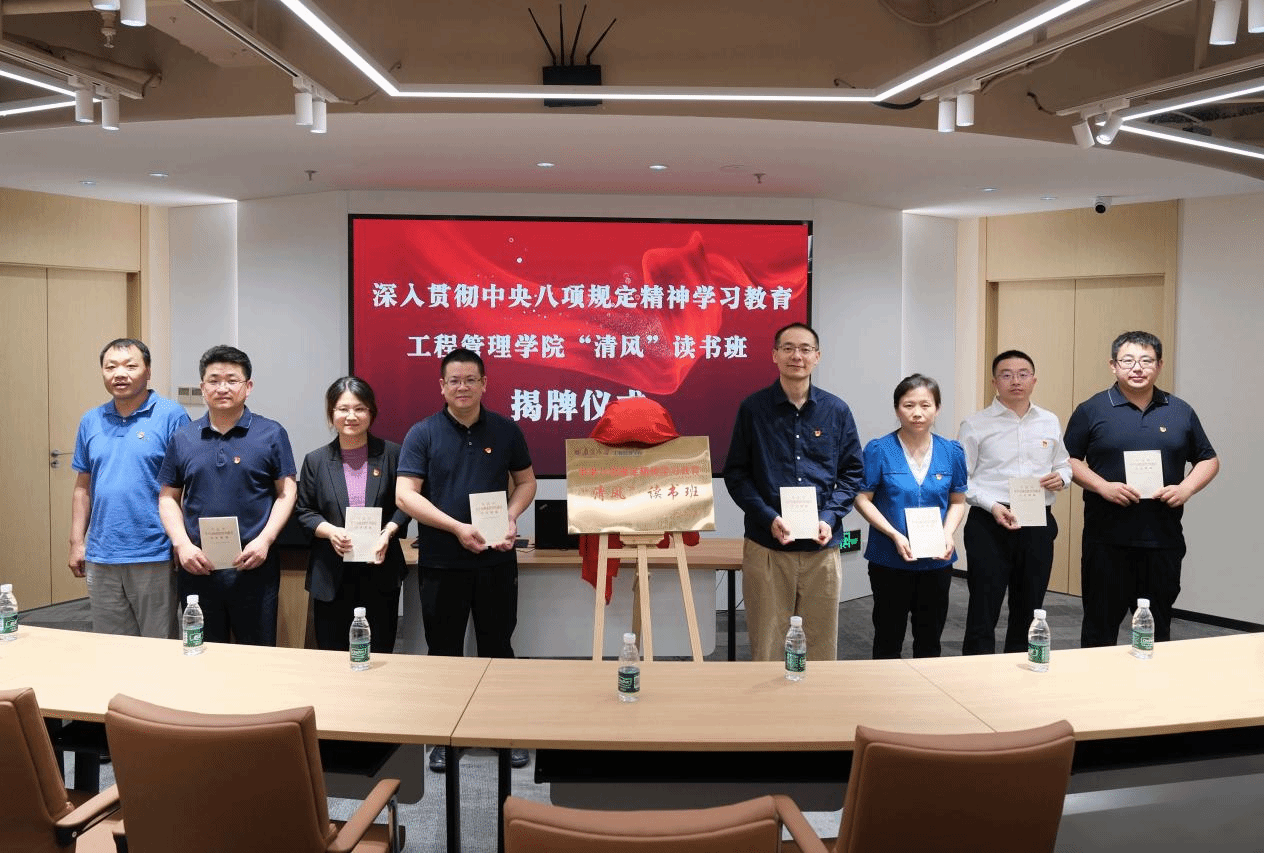 为持续、深入、高质量开展深入贯彻中央八项规定精神学习教育,会上成立了工程管理学院“清风”读书班,举行了揭牌仪式,陈志云为读书班学员代表授书。