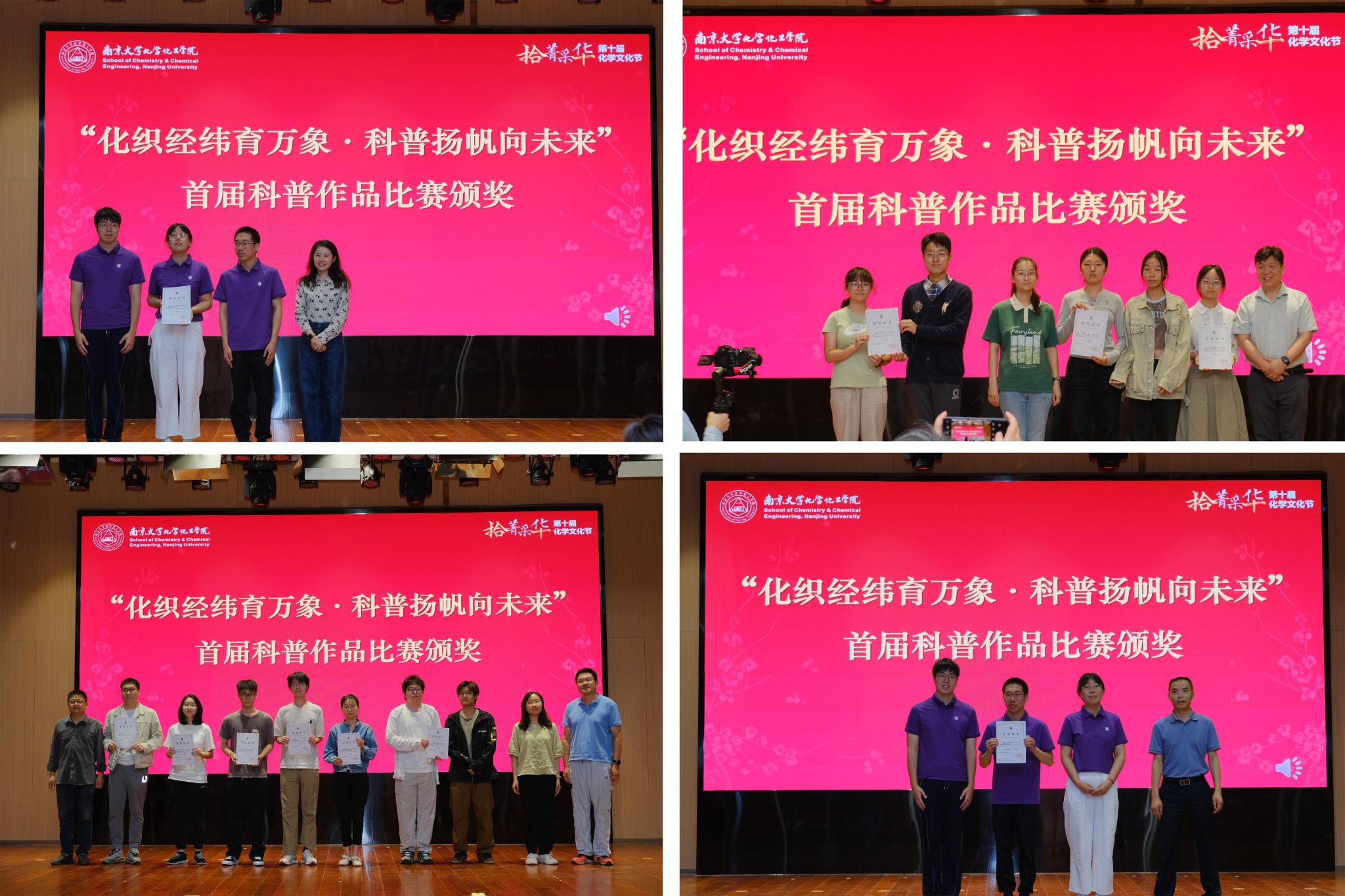 在“化织经纬育万象·科普扬帆向未来”首届科普作品决赛中,四支进入决赛的参赛作品亮点纷呈,各参赛队伍立足生活实际,进行了创意展示,作品的创新性与科普价值得到了评审专家高度肯定,现场中小学生积极参与互动,氛围热烈。此次比赛决出了一等奖、最佳人气奖作品“纸张纤维与文化传承”,二等奖作品“烹饪中的化学”“ 氢——元素拟人世界”“ 生物发光:从萤火虫谈起”。校团委副书记王维嘉、张格波、金陵小学课程处主任陈晨、化学化工学院教授袭锴、王康为获奖团队颁发证书。